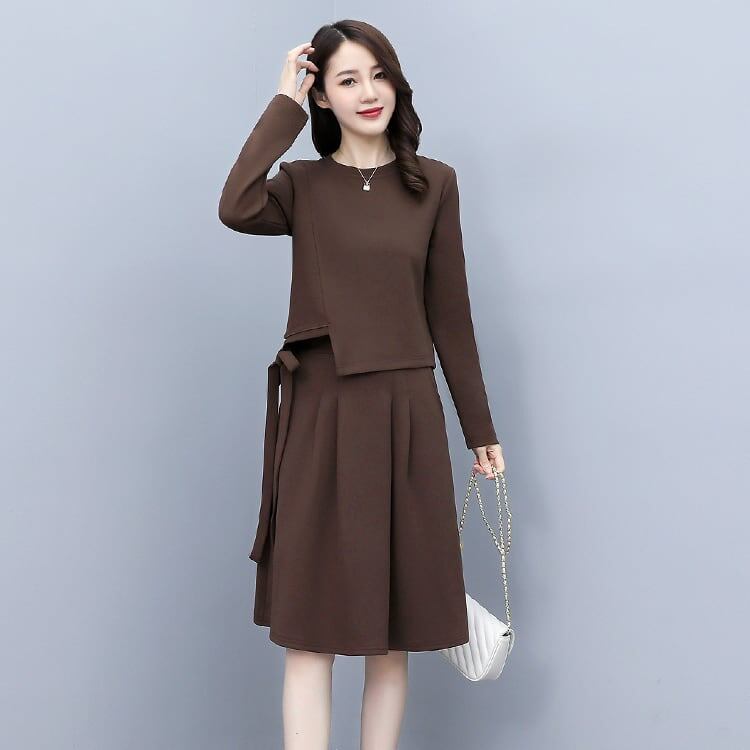 セットアップ 上下セット レディース 2点セット 大人可愛い 無地 トップス ボトムス 長袖 膝丈 フレアスカート Aライン リボン 大きいサイズ ゆったり シンプル カジュアル 通勤 通学