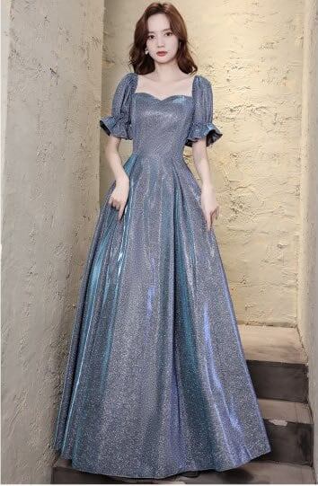 ドレス ロングドレス イブニングドレス パフスリーブ 大きいサイズ マキシ丈 パーティー お呼ばれ 発表会 演奏会 パーティー 半袖 袖あり きらきら ゴージャス エレガント 大人 オフショルダー