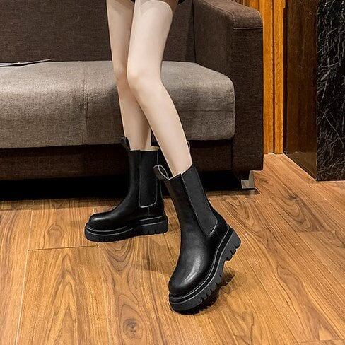 サイドゴア ブーツ レディース ミドル丈 サイドゴアブーツ 撥水 ローヒール 厚底 歩きやすい 履きやすい シンプル カジュアル 秋冬 ラウンドトゥ レザー レザーブーツ