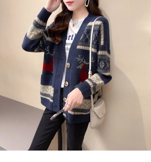 カーディガン ニット ノルディック柄 セーター レディース 大きいサイズ あったか 羽織 秋冬 アウター 上着 韓国風 オルチャン 人気 トレンド 可愛い 細見え ミディアム丈 デート 女子会