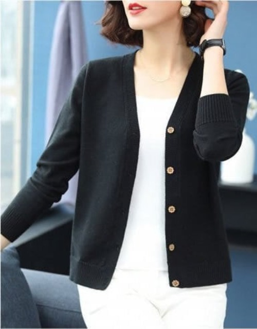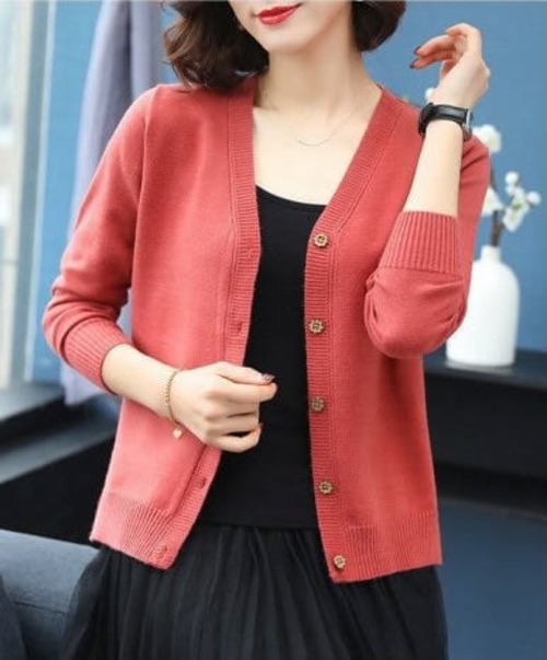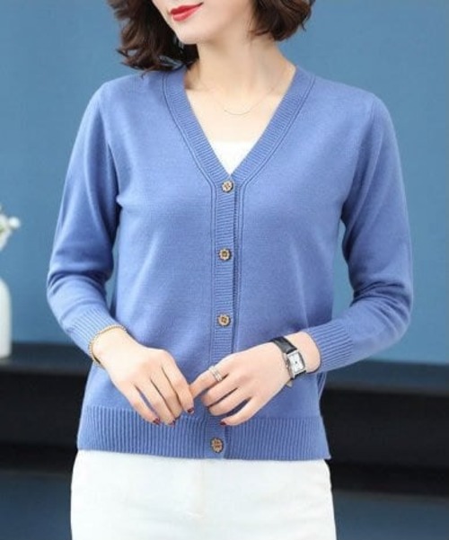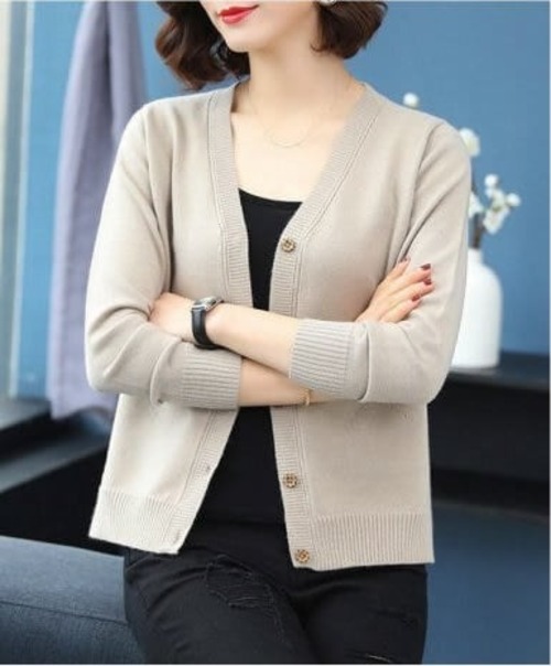 カーディガン レディース 無地 ニット アウター シンプル カジュアル ゆったり 大人 可愛い 前開き ボタン Vネック ショート丈 羽織り 長袖 秋冬 オーバーサイズ