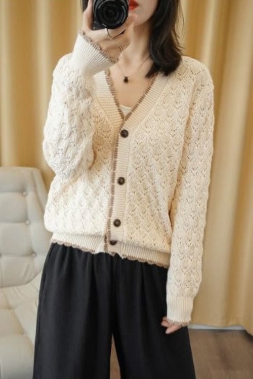 カーディガン レディース 無地 ニット アウター シンプル カジュアル ゆったり 大人 可愛い 前開き ボタン Vネック ショート丈 羽織り 長袖 秋冬 オーバーサイズ