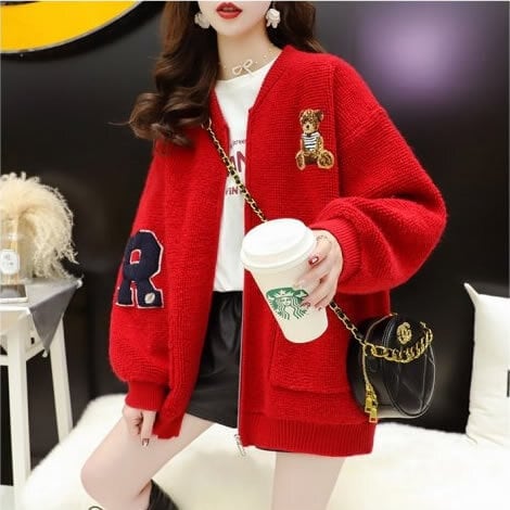 カーディガン ニット ジャケット セーター 秋冬 羽織り 前あき ファスナー ルーズフィット 大きいサイズ 着やせ ゆったり あったかい 通勤 通学 大人可愛い 韓国