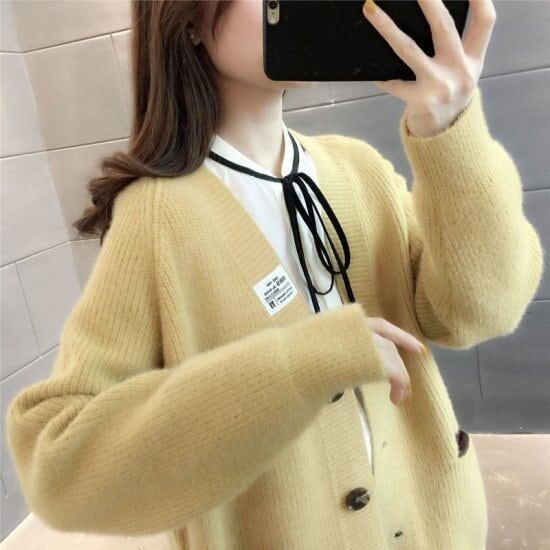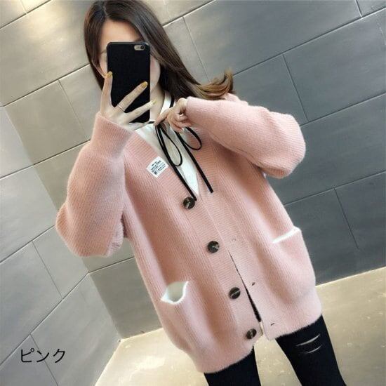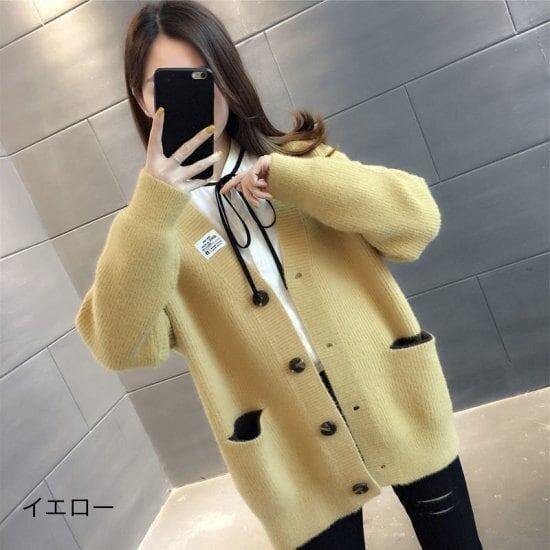カーディガン ニット セーター シンプル 無地 大きいサイズ レディースファッション 秋冬 Vネック あったか もこもこ ポケット カジュアル 韓国風 トレンド 人気 可愛い 10代 20代
