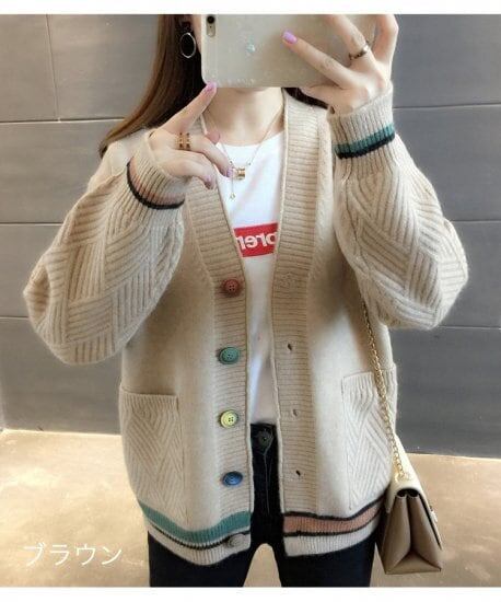 カーディガン ニット セーター トップス レディースファッションカジュアル カラーボタン カラフル ビビットカラー 可愛い トレンド 韓国風 もこもこ 秋 冬 10代 20代 Vネック 長袖