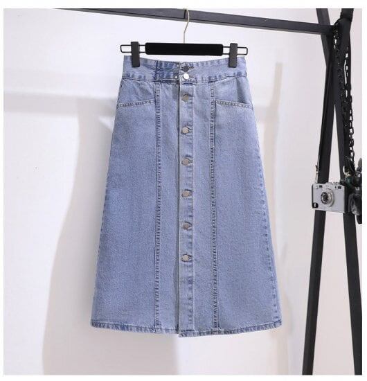 デニムスカート シャツ 2点セット デニム ブラウス セット カジュアル 長袖 ノーカラー Vネック 前開き シンプル 清潔感 ボタン 台形スカート 大人 大きいサイズ ひざ丈 セットアップ
