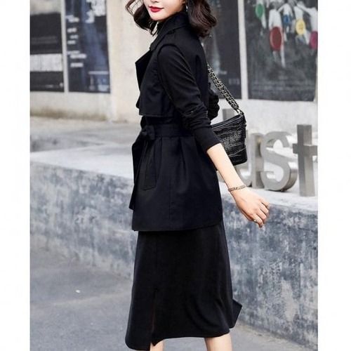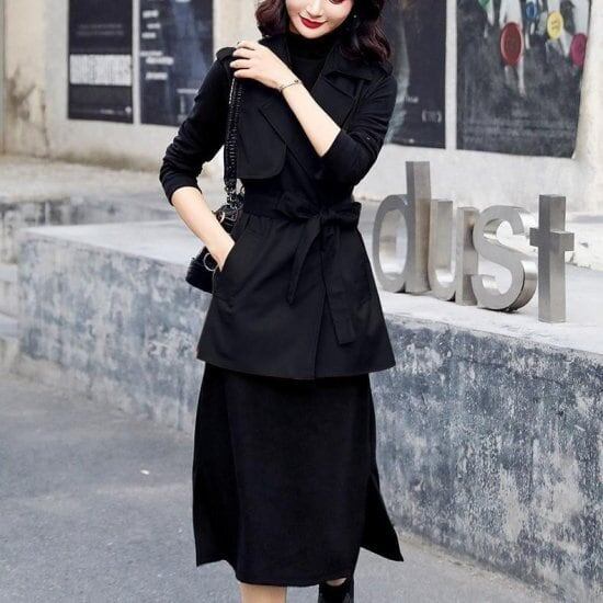 トレンチ風ベスト ワンピース 2点セット ジレ ベスト アウター ワンピース 無地 シンプル 大人 秋 ロングワンピース 長袖 大きいサイズ セット 韓国 OL 通勤
