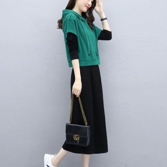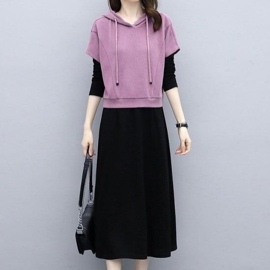 ワンピース パーカー セット 大きいサイズ ゆったり カジュアル リラックス 長袖 秋冬 パーカーワンピ 2点セット スポーティー 体型カバー ショート丈パーカー 長袖ワンピ 韓国 オルチャン