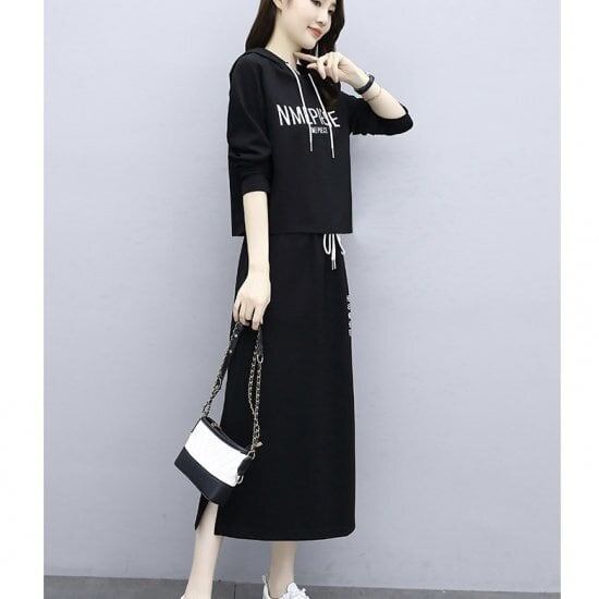 セットアップ スウェット スカート 上下セット スウェットセットアップ レディース 大きいサイズ トップス パーカー付き ウエストゴム ジャージ 秋冬 部屋着 ルームウェア ロングスカート フード