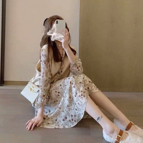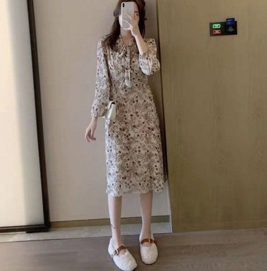 ロングワンピース ベスト 大きいサイズ 重ね着 ロング ワンピース 秋冬 カジュアル 花柄 長袖 セット 秋新作 花柄ワンピース レイヤード ロング丈 レディース おしゃれ シンプル ミモレ丈