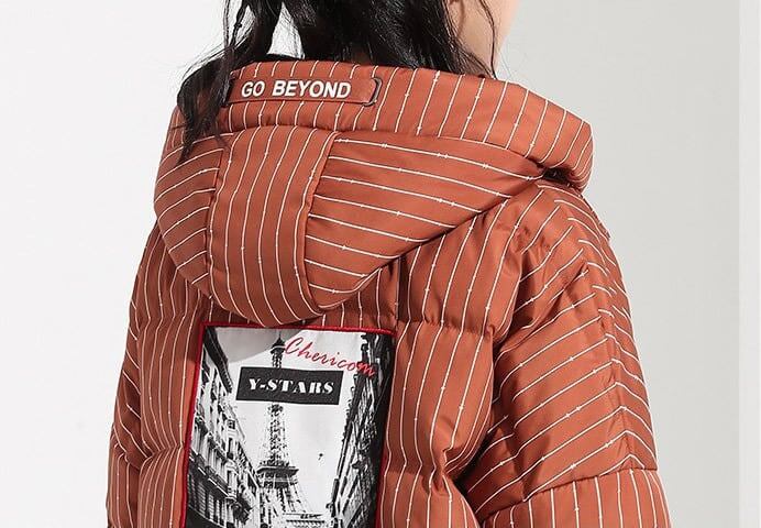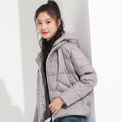 ダウンジャケット レディース ショート丈 ダウンコート フード付き ダウン ストライプ 秋冬 グレーダック 大きいサイズ 防寒 暖かい アウター カジュアル シンプル