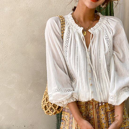 トレンドのボリュームスリーブで旬なコーデの完成。 ふんわりしたシルエットが女性らしさを演出します。 シンプルなコーデにはもちろん、柄物のボトムスを合わせて エスニックな雰囲気で着るのもかわいくてオススメです。 ●カラー ホワイト ●サイズ S 着丈:55cm バスト:100cm 袖丈:66cm M 着丈:56cm バスト:104cm 袖丈:67cm L 着丈:57cm バスト:108cm 袖丈:68cm ※測り方によって1-2cmの誤差が生じる場合が御座います。 ijw-236 ブラウス レディース 白 長袖 ノーカラー ブラウス レース エスニック ボリュームスリーブ ブラウス Vネック 春夏 ブラウス レディース 白 長袖 ノーカラー ブラウス レース エスニック こちらの商品は【取り寄せ商品】です。 御注文確定後、海外メーカーより取り寄せます。 お届けまでの目安は14日〜24日程度です。 数あるショップの中からご覧いただきありがとうございます! ショップの注意事項をよく読んでから、ご購入をお願い致します。 *注意事項 1)取引最後まで責任を持って対応いたします。トラブル防止の為遠慮なく質問して下さい。 よろしくお願いいたします。 2)商品到着後に関して、サイズ変更、カラーやイメージが違う、実寸が違う等を気にされる方のクレーム、返品、交換は一切お受けしておりません。そのような方のご購入は予めご遠慮下さい。(破れ破損の初期不良は除く) 3)検品はしっかりと行っておりますが、海外製品は多少の縫製ミス、糸のほつれ、細かい不具合、多少の色の違い、イメージ違い等がごく稀にございます。ご理解の上ご購入をお願いします。 4)届けまでの目安は14日〜24日程度です。 ご注文を頂いても海外のメーカーにて完売の場合は商品をお届けする事ができませんのでキャンセルとさせていただく場合がございます。 ご了承ください。 5)お客様の個人情報は発送以外に使用することは一切ございません。ご安心して、ご利用ください。 6)ご注文確定後のお客様都合によるキャンセルはお受けすることが出来ません。ご了承下さい。