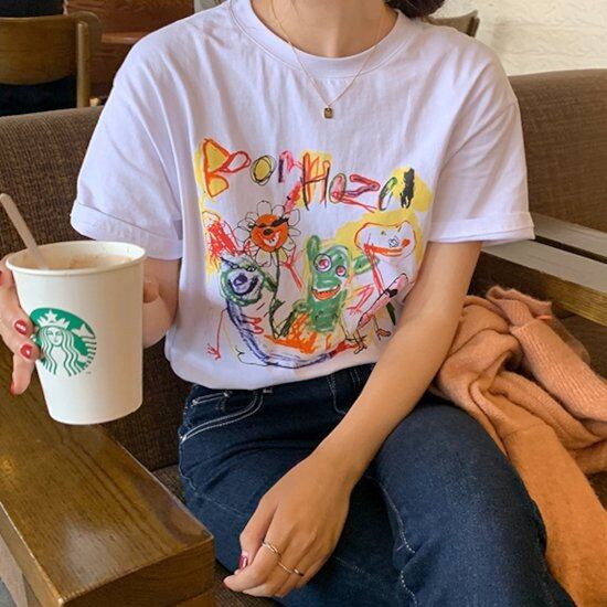 落書き風のデザインがかわいいTシャツ。 カラフルな色合いが目を惹きます。 シンプルファッションに合わせて大人かわいいコーデが完成。 ●カラー ホワイト ●サイズ FREE 着丈:67cm バスト:110cm 首回り:48cm 肩幅:49cm 袖丈:18cm ※測り方によって1-2cmの誤差が生じる場合が御座います。 ijw-238 Tシャツ レディース 半袖 春夏 かわいい クルーネック プリント Tシャツ 夏新作 韓国 ファッション おしゃれ カジュアル Tシャツ レディース 半袖 春夏 かわいい クルーネック プリント こちらの商品は【取り寄せ商品】です。 御注文確定後、海外メーカーより取り寄せます。 お届けまでの目安は14日〜24日程度です。 数あるショップの中からご覧いただきありがとうございます! ショップの注意事項をよく読んでから、ご購入をお願い致します。 *注意事項 1)取引最後まで責任を持って対応いたします。トラブル防止の為遠慮なく質問して下さい。 よろしくお願いいたします。 2)商品到着後に関して、サイズ変更、カラーやイメージが違う、実寸が違う等を気にされる方のクレーム、返品、交換は一切お受けしておりません。そのような方のご購入は予めご遠慮下さい。(破れ破損の初期不良は除く) 3)検品はしっかりと行っておりますが、海外製品は多少の縫製ミス、糸のほつれ、細かい不具合、多少の色の違い、イメージ違い等がごく稀にございます。ご理解の上ご購入をお願いします。 4)届けまでの目安は14日〜24日程度です。 ご注文を頂いても海外のメーカーにて完売の場合は商品をお届けする事ができませんのでキャンセルとさせていただく場合がございます。 ご了承ください。 5)お客様の個人情報は発送以外に使用することは一切ございません。ご安心して、ご利用ください。 6)ご注文確定後のお客様都合によるキャンセルはお受けすることが出来ません。ご了承下さい。