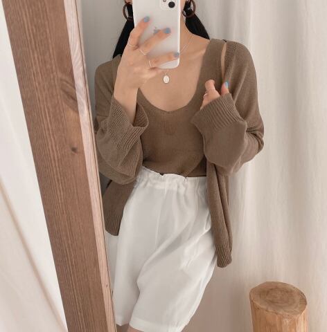 少し透け感のある薄手のニットタンクトップとカーディガンのセット。 それぞれ単品使いもできるので、着こなしの幅が広がります。 ミニスカートやショートパンツとのコーデがおすすめ♪ 【カラー】 ホワイト、ブラック、ブラウン 【サイズ】 ワンサイズ タンクトップ 着丈:54cm 身幅:39cm 腕回り:22cm カーディガン 着丈:57cm 身幅:59cm 袖丈:63cm ※測り方によって1-2cmの誤差が生じる場合が御座います。 ywt-59 カーディガン 夏 春夏 春 オフィス ドルマン タンクトップ 2点セット 薄手 ライトアウター サマーニット トップス ノースリーブ 長袖 長袖カーディガン 無地 シンプル カジュアル おしゃれ 可愛い こちらの商品は【取り寄せ商品】です。 御注文確定後、海外メーカーより取り寄せます。 お届けまでの目安は14日〜24日程度です。 数あるショップの中からご覧いただきありがとうございます! ショップの注意事項をよく読んでから、ご購入をお願い致します。 *注意事項 1)取引最後まで責任を持って対応いたします。トラブル防止の為遠慮なく質問して下さい。 よろしくお願いいたします。 2)商品到着後に関して、サイズ変更、カラーやイメージが違う、実寸が違う等を気にされる方のクレーム、返品、交換は一切お受けしておりません。そのような方のご購入は予めご遠慮下さい。(破れ破損の初期不良は除く) 3)検品はしっかりと行っておりますが、海外製品は多少の縫製ミス、糸のほつれ、細かい不具合、多少の色の違い、イメージ違い等がごく稀にございます。ご理解の上ご購入をお願いします。 4)届けまでの目安は14日〜24日程度です。 ご注文を頂いても海外のメーカーにて完売の場合は商品をお届けする事ができませんのでキャンセルとさせていただく場合がございます。 ご了承ください。 5)お客様の個人情報は発送以外に使用することは一切ございません。ご安心して、ご利用ください。 6)ご注文確定後のお客様都合によるキャンセルはお受けすることが出来ません。ご了承下さい。