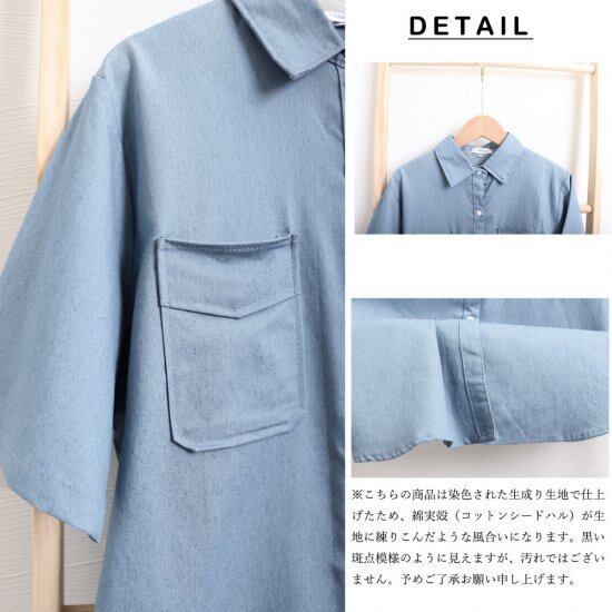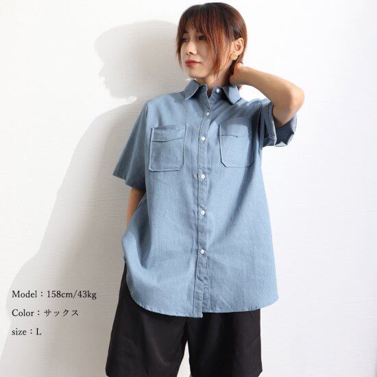 ゆったりとしたサイズ感がトレンド感のあるデニム風シャツ!! 胸元ポケットがアクセントでカジュアルスタイルに 一枚で着るのはもちろんライトアウターとしても活躍できます♪ 【カラー】 サックス 【サイズ】 L、XL、XXL L 着丈:約69cm 肩幅:約40cm 袖丈:約25cm ゆき:約45cm 身幅:約53cm 胸囲:約106cm XL 着丈:約71cm 肩幅:約42cm 袖丈:約26cm ゆき:約47cm 身幅:約55cm 胸囲:約110cm XXL 着丈:約72cm 肩幅:約43cm 袖丈:約27cm ゆき:約48.5cm 身幅:約56cm 胸囲:約112cm 素材:綿65%+ポリエステル33%+ポリウレタン2% 裏地:なし 伸縮性:なし 透け感:なし 生産国:中国 ※すべて平置きサイズです(採寸方法違いより、多少の誤差がございますので、ご了承ください)。 ※海外輸入品のため、商品の細部仕様は多少異なる場合がございます。予めご了承の上、ご注文お願い致します。 gjl-1 デニムシャツ デニムシャツレディース 半袖デニムシャツ デニム 半袖 デニムジャケット Gジャン 羽織り デニムシャツ デニムシャツレディース 半袖デニムシャツ デニム 半袖 デニムジャケット Gジャン 羽織り こちらの商品は【取り寄せ商品】です。 御注文確定後、海外メーカーより取り寄せます。 お届けまでの目安は14日〜24日程度です。 数あるショップの中からご覧いただきありがとうございます! ショップの注意事項をよく読んでから、ご購入をお願い致します。 *注意事項 1)取引最後まで責任を持って対応いたします。トラブル防止の為遠慮なく質問して下さい。 よろしくお願いいたします。 2)商品到着後に関して、サイズ変更、カラーやイメージが違う、実寸が違う等を気にされる方のクレーム、返品、交換は一切お受けしておりません。そのような方のご購入は予めご遠慮下さい。(破れ破損の初期不良は除く) 3)検品はしっかりと行っておりますが、海外製品は多少の縫製ミス、糸のほつれ、細かい不具合、多少の色の違い、イメージ違い等がごく稀にございます。ご理解の上ご購入をお願いします。 4)届けまでの目安は14日〜24日程度です。 ご注文を頂いても海外のメーカーにて完売の場合は商品をお届けする事ができませんのでキャンセルとさせていただく場合がございます。 ご了承ください。 5)お客様の個人情報は発送以外に使用することは一切ございません。ご安心して、ご利用ください。 6)ご注文確定後のお客様都合によるキャンセルはお受けすることが出来ません。ご了承下さい。