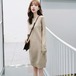 ワンピース ニットドレス レディース ガールズ カジュアル 長袖 千鳥格子 ミディ丈 ミリタリー ハイウエスト 秋冬 あたたか レトロ 襟 セーター
