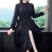 ワンピース ニットドレス レディース ガールズ エレガント 長袖 フリース あったか ミディ丈 秋冬 新作 通勤 キレイ レース ラウンドネック