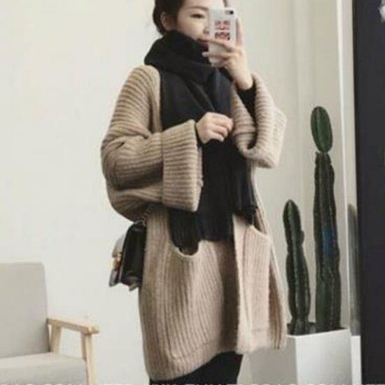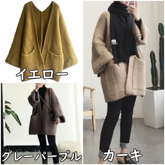 ニット ジャケット 長袖 ジップアップ 前あき 秋冬レディース モコモコ 羽織り ルーズフィット 大きいサイズ 着やせ 韓国 ゆったり あったかい ロング丈 アウター 通学