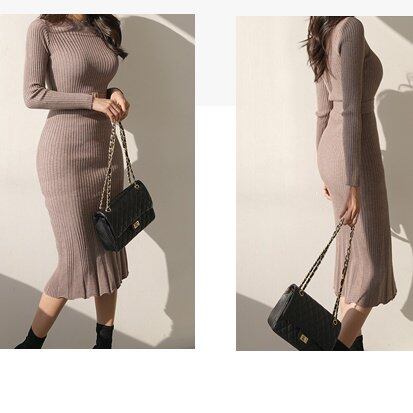 ワンピース ニットドレス レディース ガールズ エレガント 長袖 フリース あったか ミディ丈 秋冬 新作 通勤 キレイ レース ラウンドネック