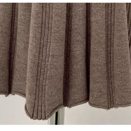 ワンピース ニットドレス レディース ガールズ カジュアル 長袖 千鳥格子 ミディ丈 ミリタリー ハイウエスト 秋冬 あたたか レトロ 襟 セーター