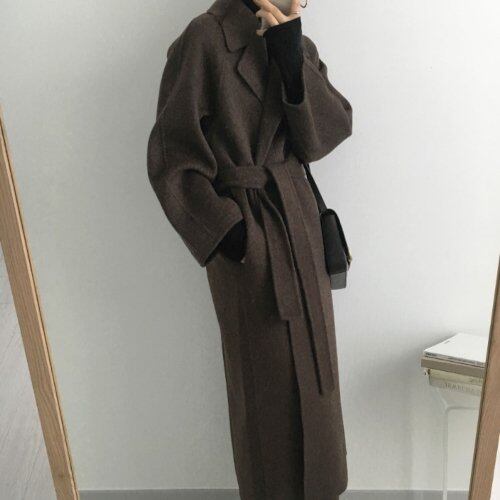 ロングコート レディース アウター 秋 大きいサイズ ベルト付き チェスターコート 大人可愛い 韓国 オルチャン ブラック ウールコート 超ロングコート