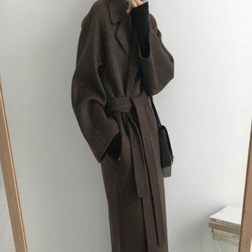ロングコート レディース アウター 秋 大きいサイズ ベルト付き チェスターコート 大人可愛い 韓国 オルチャン ブラック ウールコート 超ロングコート