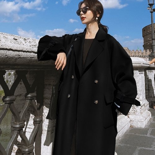 ロングコート レディース アウター 秋 大きいサイズ ベルト付き チェスターコート 大人可愛い 韓国 オルチャン ブラック ウールコート 超ロングコート