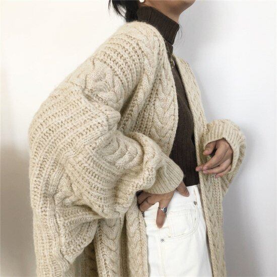 ニット ジャケット 長袖 ジップアップ 前あき 秋冬レディース モコモコ 羽織り ルーズフィット 大きいサイズ 着やせ 韓国 ゆったり あったかい ロング丈 アウター 通学