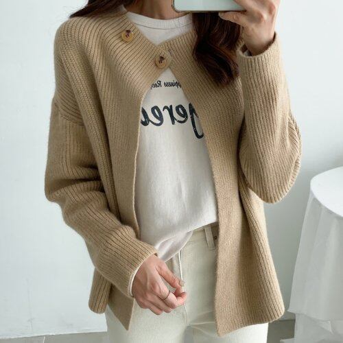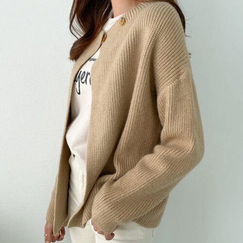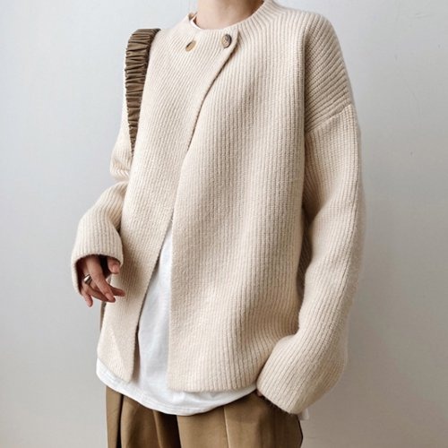 カーディガン レディース 無地 ニット アウター シンプル カジュアル ゆったり 大人 可愛い 前開き ボタン Vネック ショート丈 羽織り 長袖 秋冬 オーバーサイズ