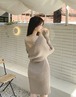 ワンピース ニットドレス レディース ガールズ エレガント 長袖 フリース あったか ミディ丈 秋冬 新作 通勤 キレイ レース ラウンドネック