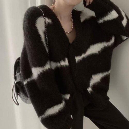 カーディガン レディース 無地 ニット アウター シンプル カジュアル ゆったり 大人 可愛い 前開き ボタン Vネック ショート丈 羽織り 長袖 秋冬 オーバーサイズ