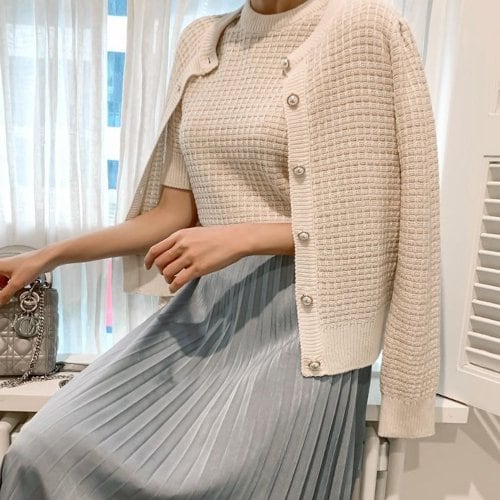 カーディガン スカート セット セーター 羽織り モノトーン プリーツスカート ミニスカート セットアップ 2点セット 大きいサイズ ゆったり ビックシルエット 通学