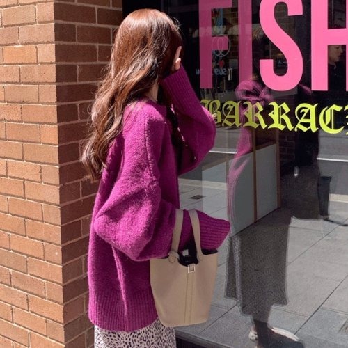 カーディガン レディース 無地 ニット アウター シンプル カジュアル ゆったり 大人 可愛い 前開き ボタン Vネック ショート丈 羽織り 長袖 秋冬 オーバーサイズ