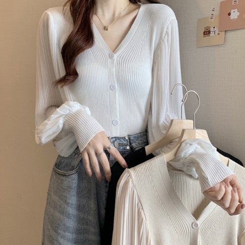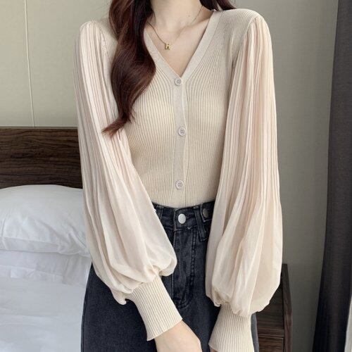 カーディガン レディース 無地 ニット アウター シンプル カジュアル ゆったり 大人 可愛い 前開き ボタン Vネック ショート丈 羽織り 長袖 秋冬 オーバーサイズ