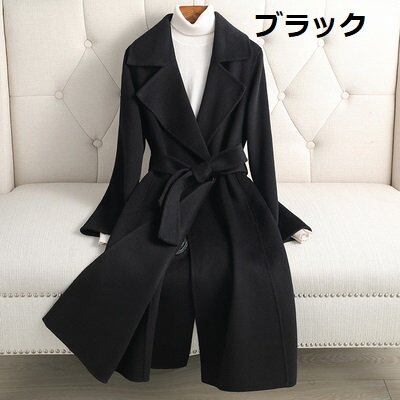 ロングコート レディース アウター 秋 大きいサイズ ベルト付き チェスターコート 大人可愛い 韓国 オルチャン ブラック ウールコート 超ロングコート