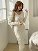 ワンピース ニットドレス レディース ガールズ エレガント 長袖 フリース あったか ミディ丈 秋冬 新作 通勤 キレイ レース ラウンドネック
