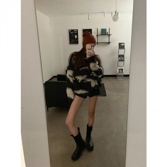 ニット ジャケット 長袖 ジップアップ 前あき 秋冬レディース モコモコ 羽織り ルーズフィット 大きいサイズ 着やせ 韓国 ゆったり あったかい ロング丈 アウター 通学