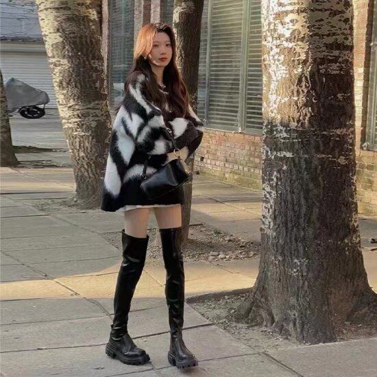 ニット ジャケット 長袖 ジップアップ 前あき 秋冬レディース モコモコ 羽織り ルーズフィット 大きいサイズ 着やせ 韓国 ゆったり あったかい ロング丈 アウター 通学
