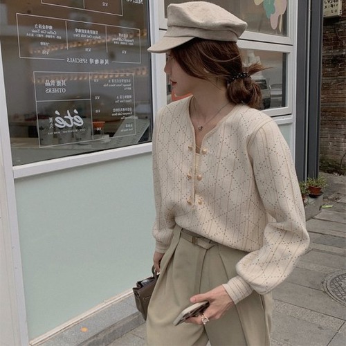 カーディガン レディース 無地 ニット アウター シンプル カジュアル ゆったり 大人 可愛い 前開き ボタン Vネック ショート丈 羽織り 長袖 秋冬 オーバーサイズ