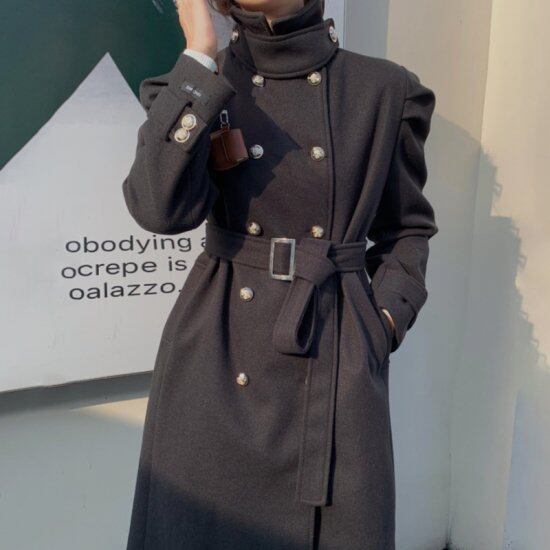 ロングコート レディース アウター 秋 大きいサイズ ベルト付き チェスターコート 大人可愛い 韓国 オルチャン ブラック ウールコート 超ロングコート