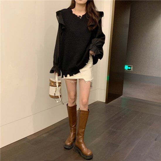 カーディガン スカート セット セーター 羽織り モノトーン プリーツスカート ミニスカート セットアップ 2点セット 大きいサイズ ゆったり ビックシルエット 通学