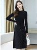 ワンピース ニットドレス レディース ガールズ カジュアル 長袖 千鳥格子 ミディ丈 ミリタリー ハイウエスト 秋冬 あたたか レトロ 襟 セーター