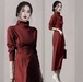 ワンピース ニットドレス レディース ガールズ エレガント 長袖 フリース あったか ミディ丈 秋冬 新作 通勤 キレイ レース ラウンドネック