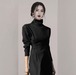 ワンピース ニットドレス レディース ガールズ カジュアル 長袖 千鳥格子 ミディ丈 ミリタリー ハイウエスト 秋冬 あたたか レトロ 襟 セーター
