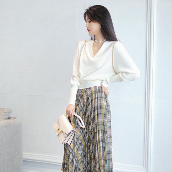 カーディガン スカート セット セーター 羽織り モノトーン プリーツスカート ミニスカート セットアップ 2点セット 大きいサイズ ゆったり ビックシルエット 通学