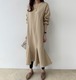 ワンピース ニットドレス レディース ガールズ エレガント 長袖 フリース あったか ミディ丈 秋冬 新作 通勤 キレイ レース ラウンドネック