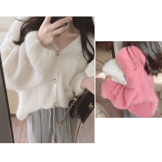 カーディガン レディース 無地 ニット アウター シンプル カジュアル ゆったり 大人 可愛い 前開き ボタン Vネック ショート丈 羽織り 長袖 秋冬 オーバーサイズ