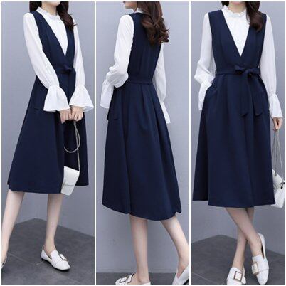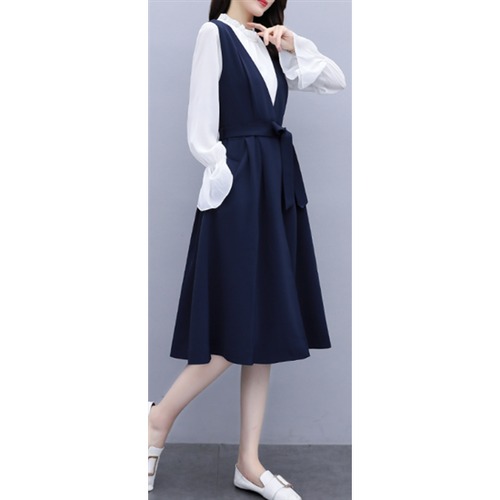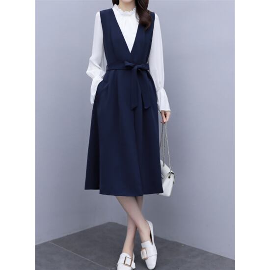 ワンピース ドレス シャツワンピース ホワイト 大きいサイズ Vネック 長袖 春 秋 ウエストマーク 細見え 着痩せ プリーツスカート お呼ばれ パーティー セレブカジュアル セクシー 可愛い
