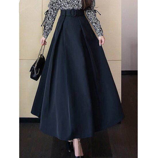 Aライン スカート ロング 大きいサイズ レディース 婦人服 膝下 フレア 着痩せ 体型カバー 大人 シンプル 秋 冬 2XL 〜 7XL 30代 40代 50代