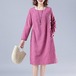 ワンピース ニットドレス レディース ガールズ エレガント 長袖 フリース あったか ミディ丈 秋冬 新作 通勤 キレイ レース ラウンドネック